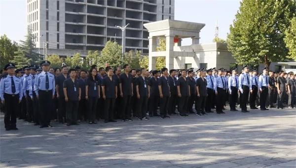 9月28日早上8点30分,新密法院全体干警着装整齐,在院内集合,庄重肃穆的参加了升旗仪式。由七名司法警察组成的国旗护卫队,英姿飒爽的迈着矫健的步伐,走向升旗台。