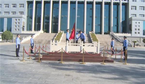 紧接着升旗手、护旗手各司其职,密切配合,伴随着高昂雄壮的《义勇军进行曲》的奏响,护旗手握着国旗,振臂一挥,现场奏起雄壮的国歌,鲜艳的五星红旗在全场注目下冉冉升起迎风飘扬,浓浓的爱国爱党情怀在现场升华……全体干警神情庄重,凝神肃立,表达了对党、国家和人民的赤胆忠心,展示了立足本职的坚定信念,寄托了对国家美好明天的由衷祝福。