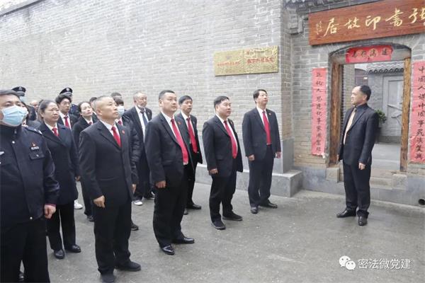 之后,集中前往新密市大隗镇进化村,参观红色教育基地革命烈士张书印同志故居、纪念馆,并在张书印烈士墓前开展祭扫活动。青砖灰瓦,简朴自然,庄重沧桑,参加活动干警在详细了解张书印同志光辉事迹的同时,也感受到了中国共产党初创时期,党领导人民在密县以及豫西进行的革命和探索的艰辛历程。