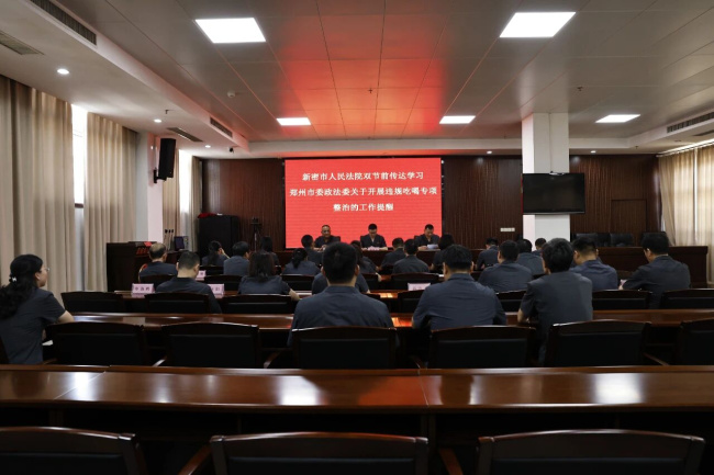 会议学习了中央、省、郑州市、新密市等各级纪委监委关于违反中央八项规定精神典型问题通报,传达了郑州市委政法委关于违规吃喝专项整治工作的工作提醒。