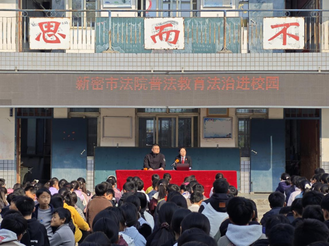 2025年11月5日,新密法院民二庭庭长、员额法官邹银华走进新密市白寨镇第一初级中学,为全校1000余名学子带来了一场主题鲜明、内容生动的法治教育课,以司法力量浸润青春心田,助力构建平安和谐的阳光校园。