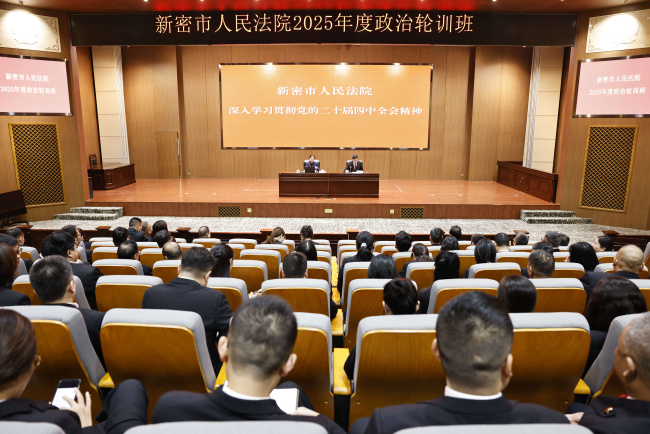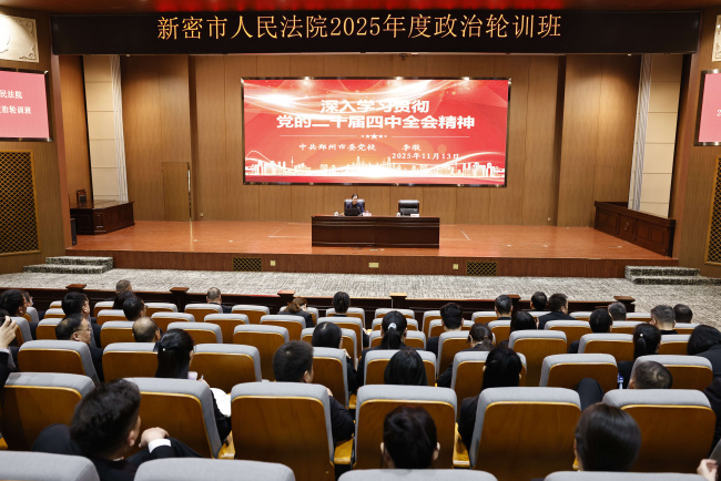 为推动党的二十届四中全会精神在司法领域落地生根,切实把“十五五”时期经济社会发展重大部署转化为审判执行工作的强大动力,11月13日,新密法院政治轮训进入第二天,以专题培训为重要学习载体,组织全体干警集中研学党的二十届四中全会精神,特邀郑州市委党校李敬教授作《党的二十届四中全会精神解读》辅导报告。培训由院党组副书记、副院长刘隆斐主持,全体干警参加。