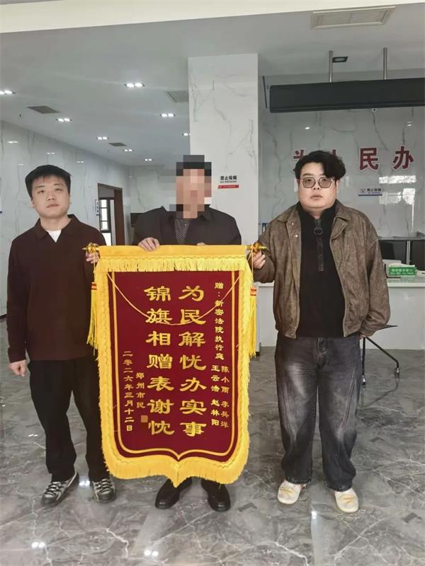 3月12日,申请人吴某专程从郑州来到新密法院,将一面印有“为民解忧办实事,锦旗相赠表谢忱”的锦旗送到执行干警手中,对法院高效、为民的执行工作表达由衷感谢,并大力点赞新密法院全力维护群众合法权益的扎实作风。